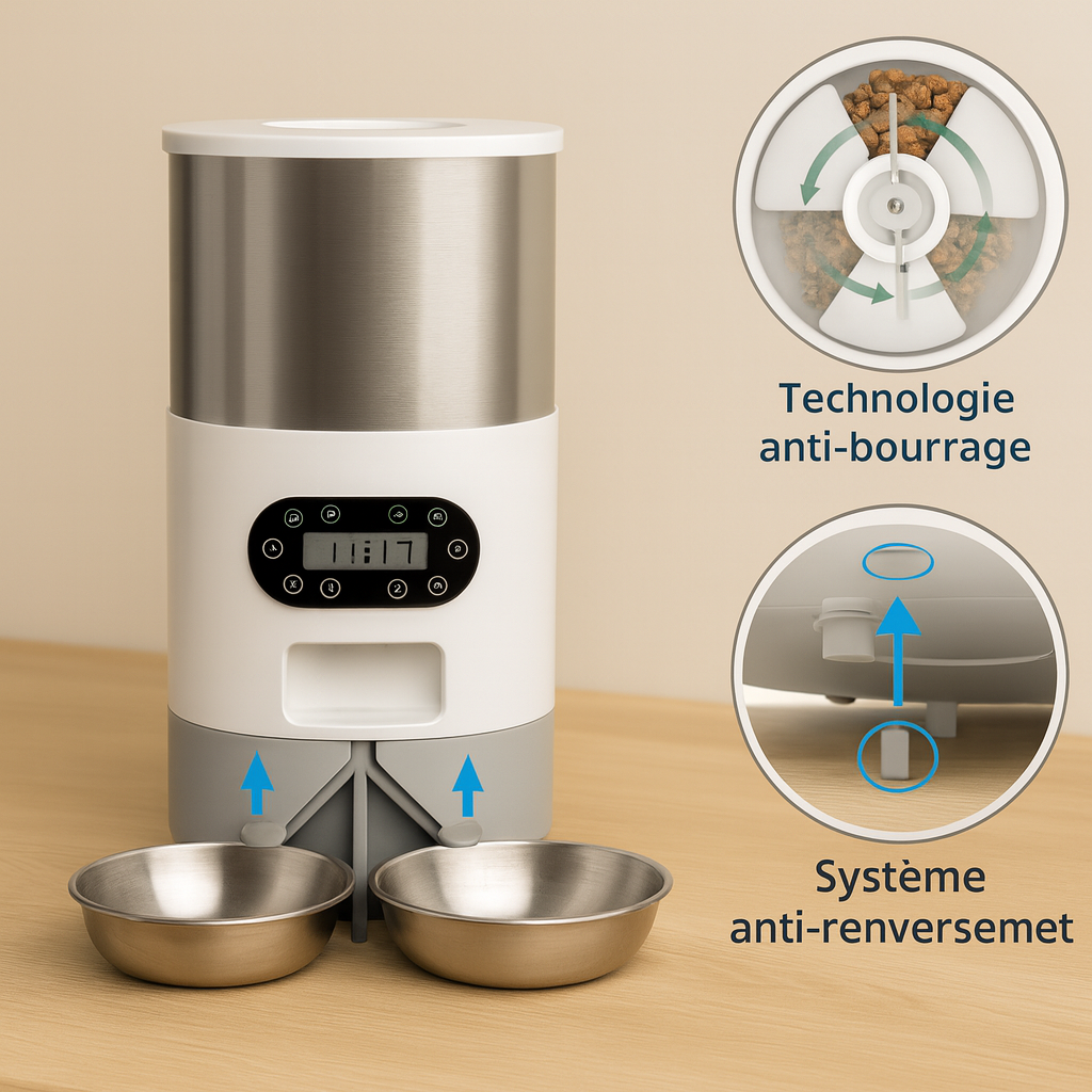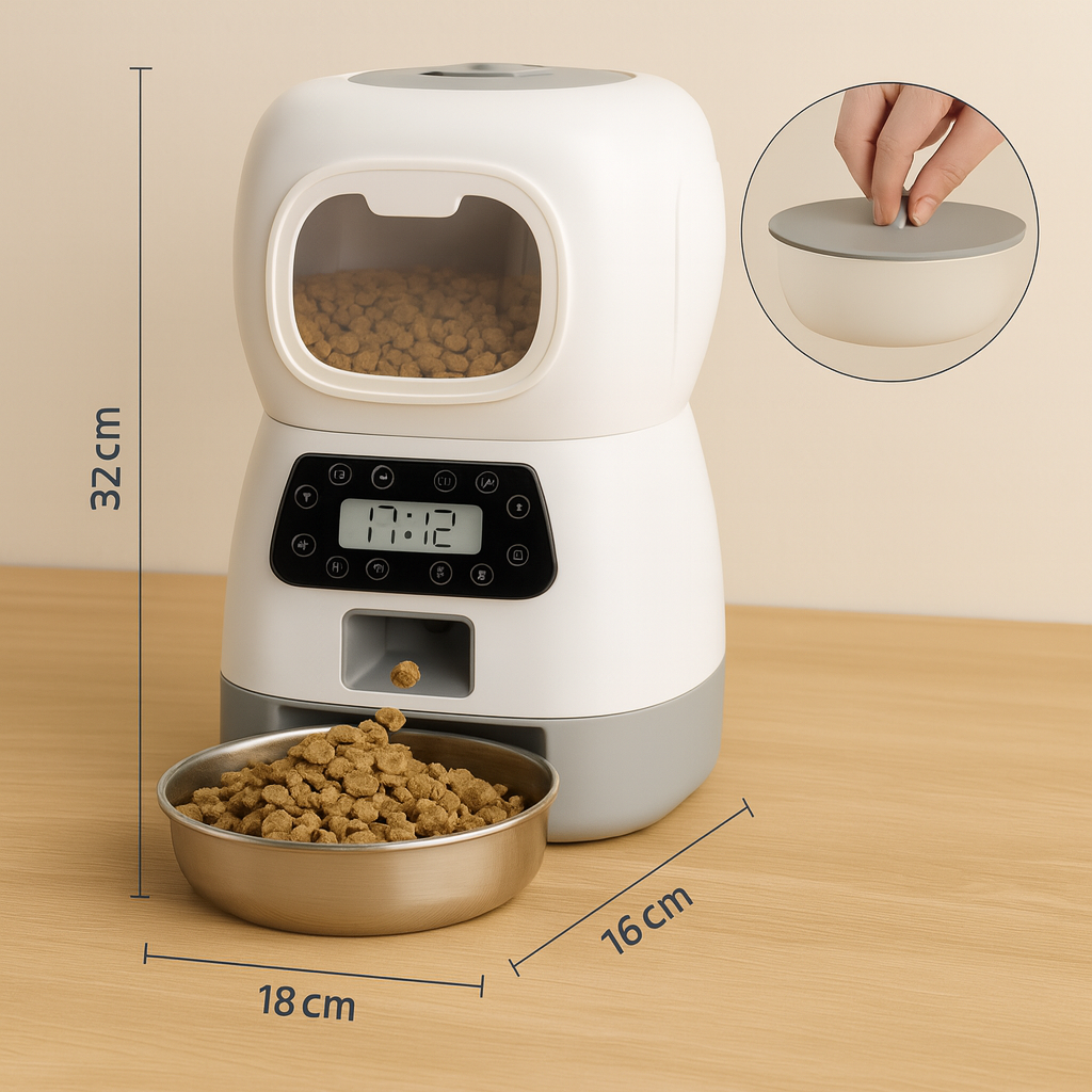 📱 Version WiFi : contrôlez l’alimentation depuis votre téléphone, programmez les heures et les portions à distance, même quand vous n’êtes pas à la maison.